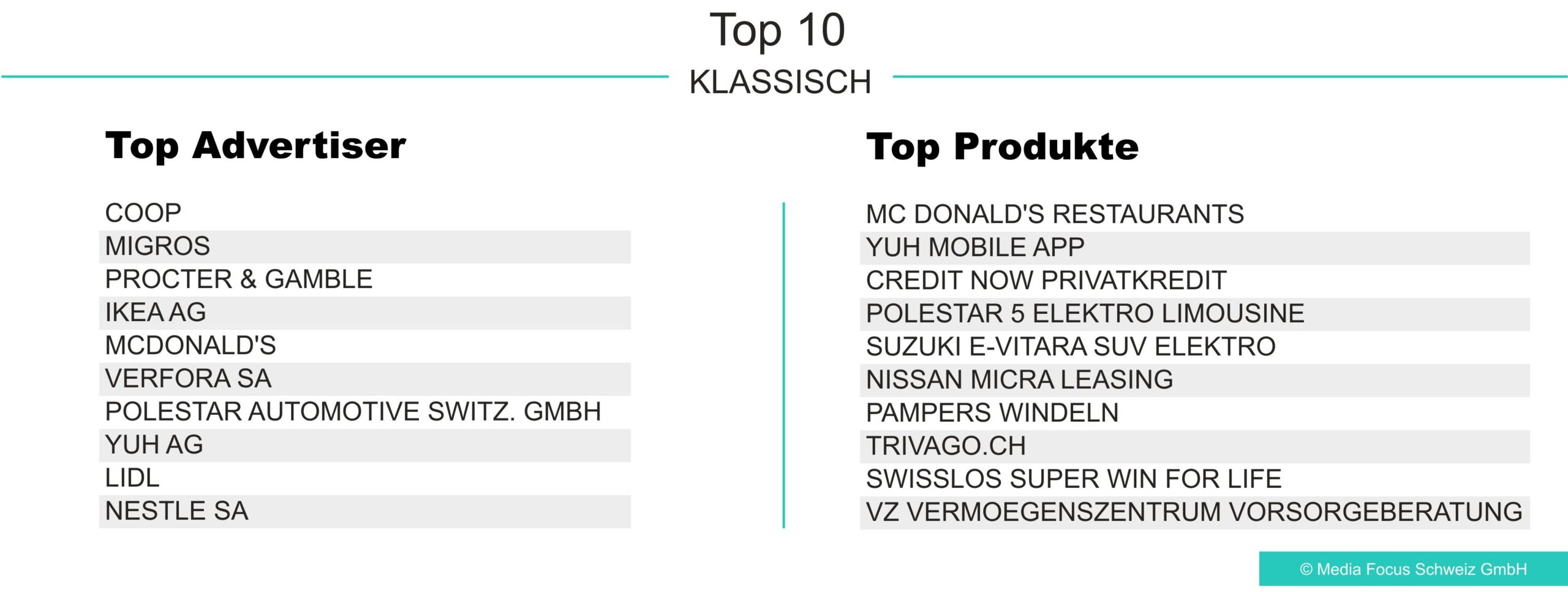 Die Top Werbungtreibenden und meistbeworbenen Produkte sowie Dienstleistungen (ohne Sortiments- Imagewerbung und Sammelkategorien) im Januar 2026.